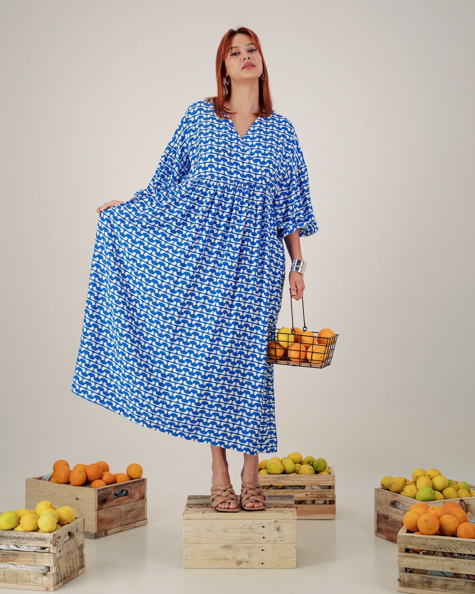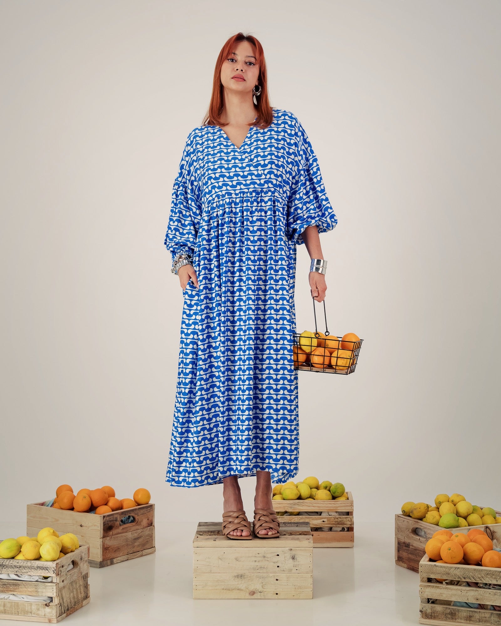 This stunning piece showcases a faux wrap with a gathered waist for a flattering silhouette, while allowing the fabric to gracefully fall , creating an effortlessly chic appearance.
