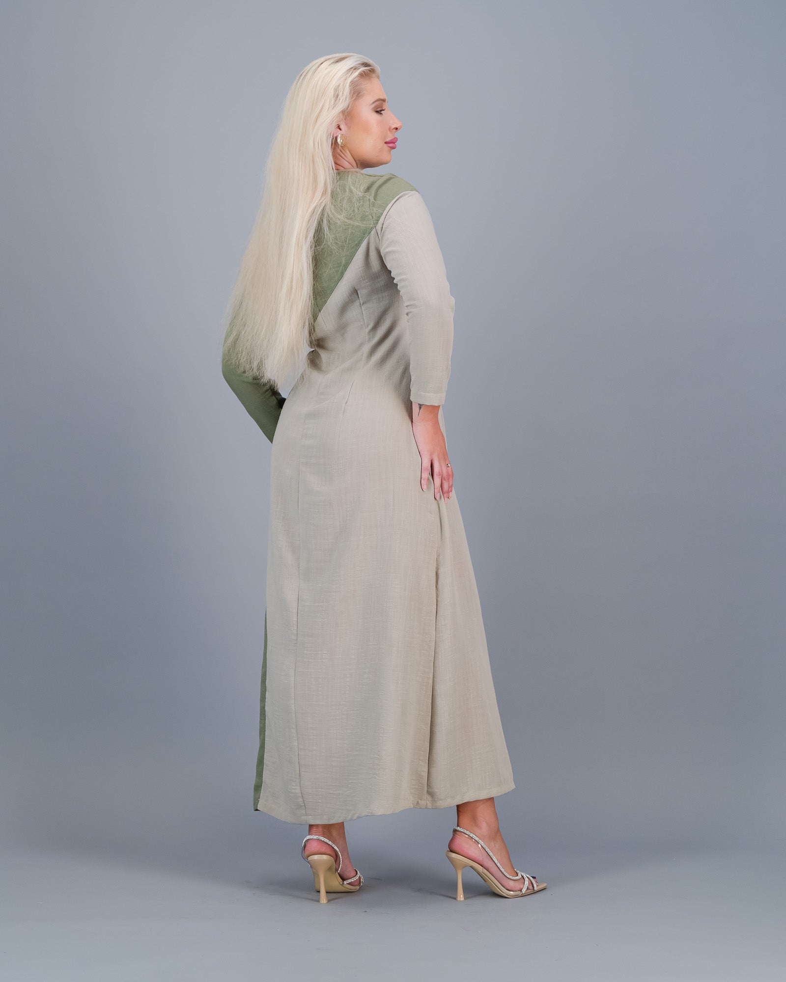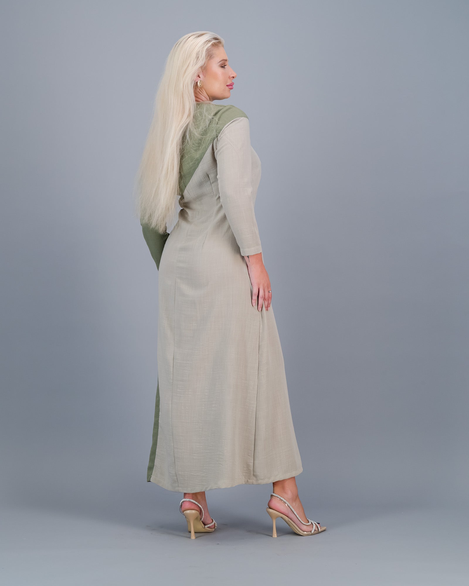 Introducing JASMINE , the chic and timeless dress that embodies elegance and modernity. Our expert designers have seamlessly integrated two fabrics to create a beautifully tailored fit that flatters the body. This garment has been carefully crafted for a flawless and sophisticated look.